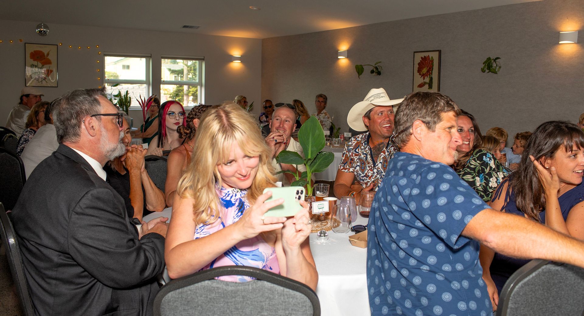 Inside Presentation: 56 seatsInside Classroom: 8 2x10 ft tables, 32 seatsInside Meeting: U-shape, []-shape or large table, up to 56 seatsInside Banquet: 8 round tables 7 per table, outside buffet tables, 56 seatsInside-Outside Banquet: 14 round & long tables, outside buffet tables, 100 seatsInside Social Gathering: hors d'oeuvres table, 56 personsInside-Outside Social Gathering: hors d'oeuvres tables, 120 personsFor event booking inquires, please contact Curtis Armstrong, General Manager at 805-528-8888.