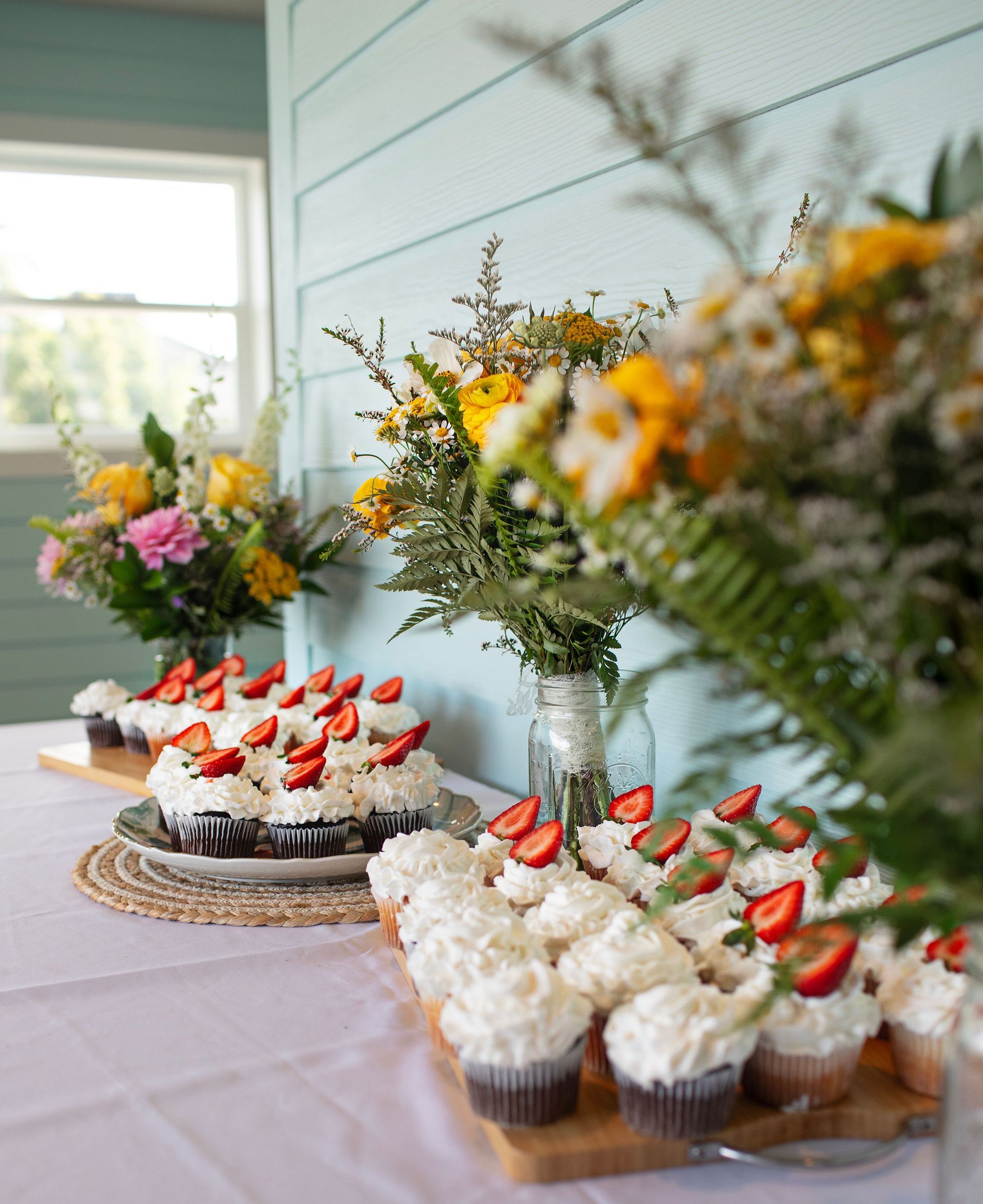 Inside Banquet: 8 round tables 7 per table, outside buffet tables, 56 seats